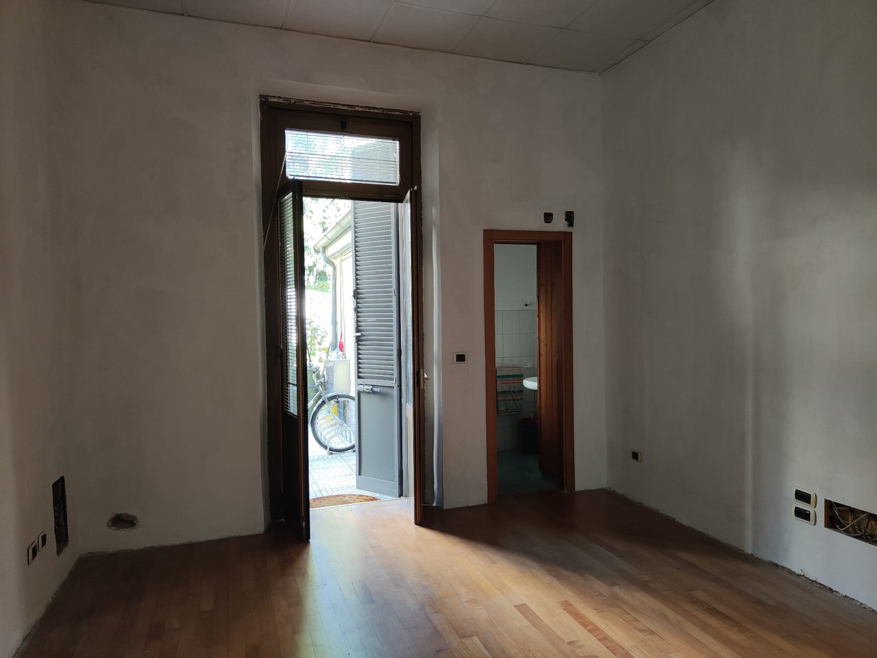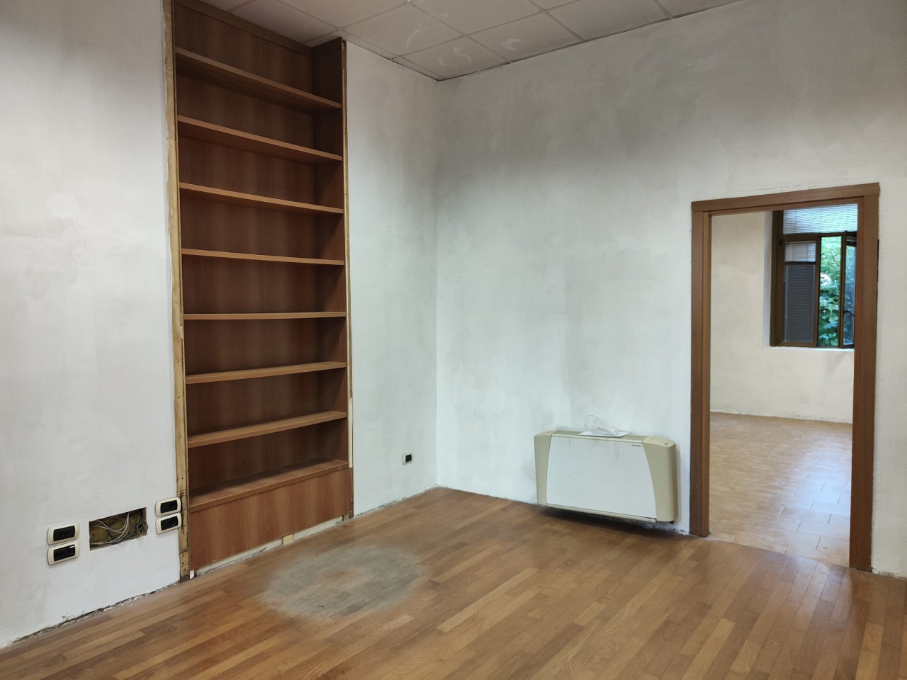 Si tratta di un immobile attualmente accatastato come ufficio, composto da un ingresso su un primo ampio ambiente, un secondo locale con affaccio su un giardino ad uso esclusivo di circa 30 mq., oltre ad un ampio bagno finestrato.