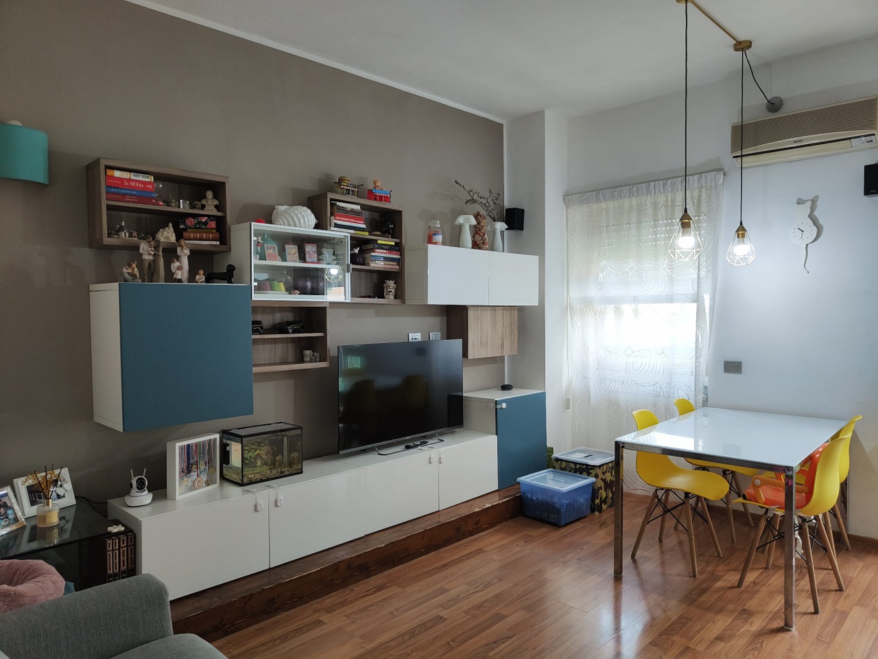 Il balcone offre uno spazio all'aperto dove godersi il sole, mentre le due camere garantiscono privacy e tranquillità. Il bagno è funzionale e ben curato, e non dimentichiamo il pratico locale ripostiglio/lavanderia, che aggiunge ulteriore comodità. Dotato di riscaldamento autonomo e aria condizionata, questo appartamento è pronto per essere abitato senza ulteriori lavori.