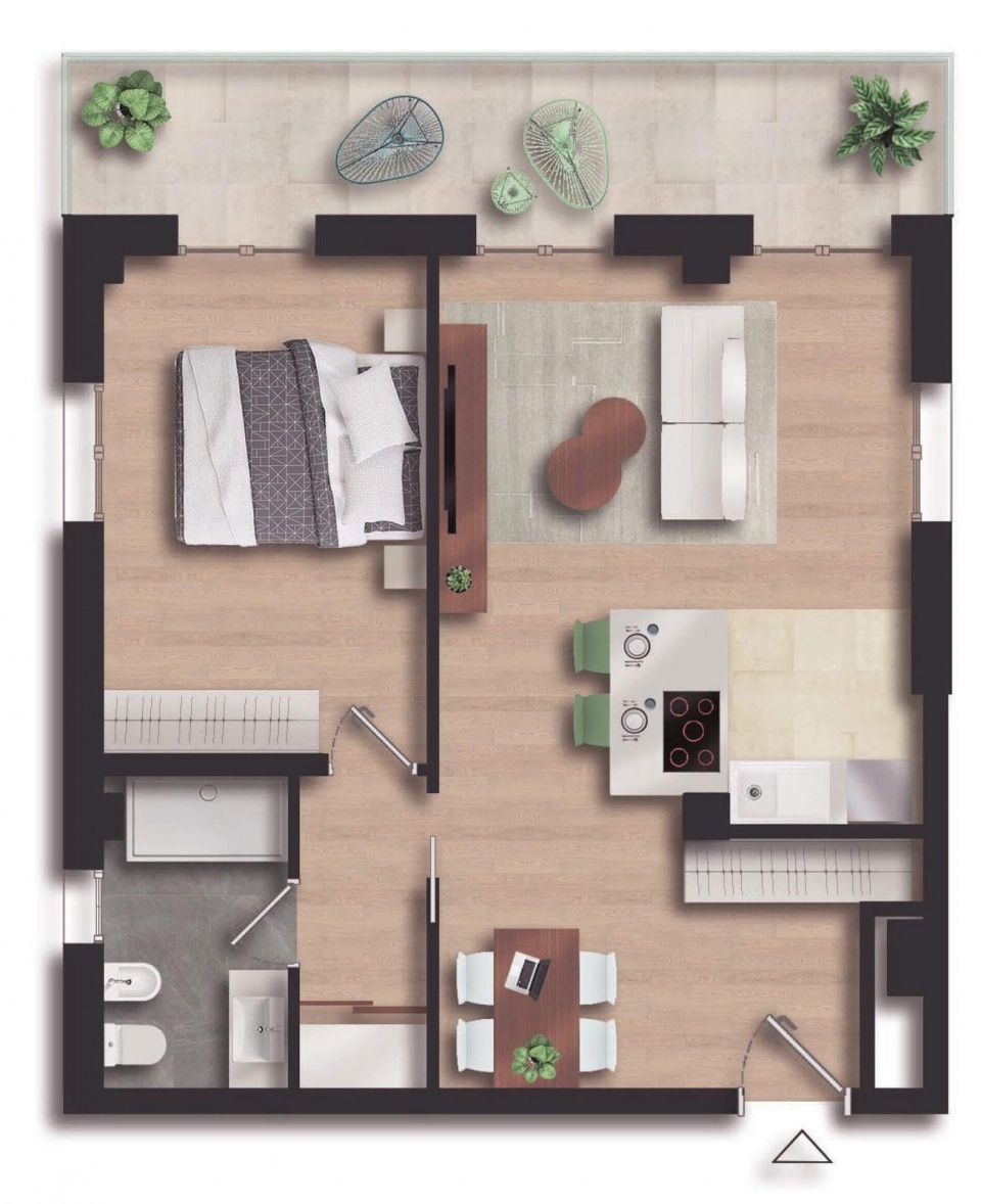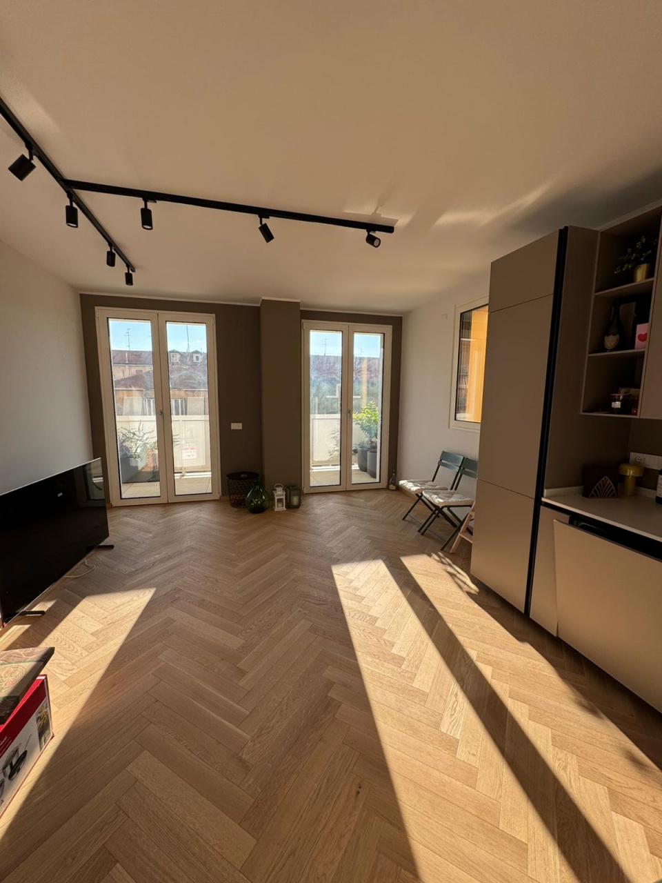 L'immobile piano intermedio dello stabile, gode di una tripla esposizione ed e' composto da ingresso, soggiorno con cucina a vista, camera matrimoniale, bagno ed panoramico e vivibile terrazzo, per una metratura complessiva di circa 70 mq.