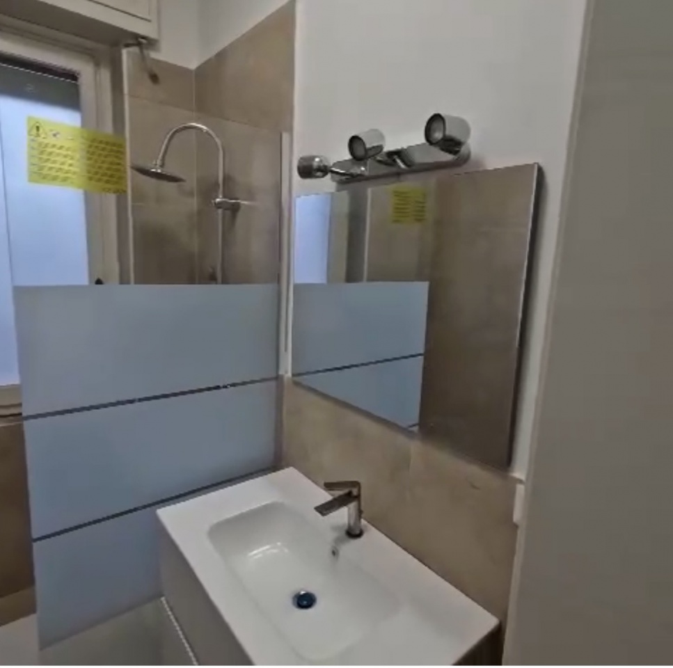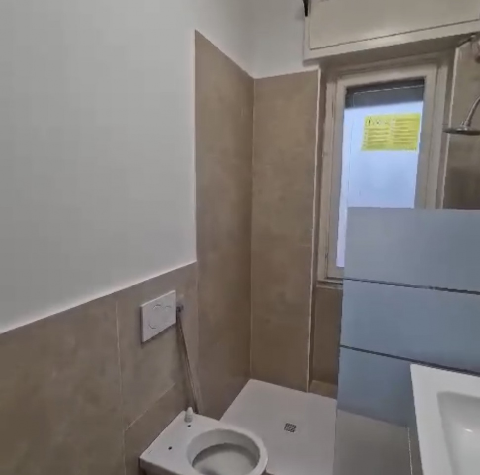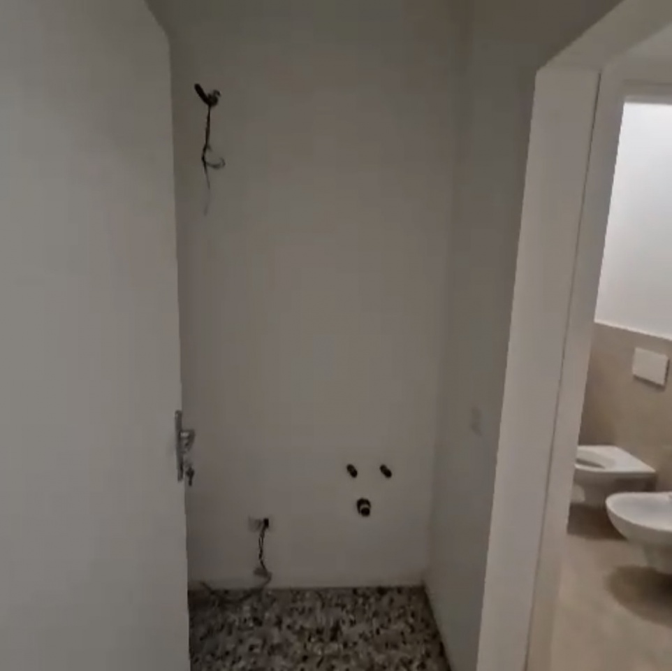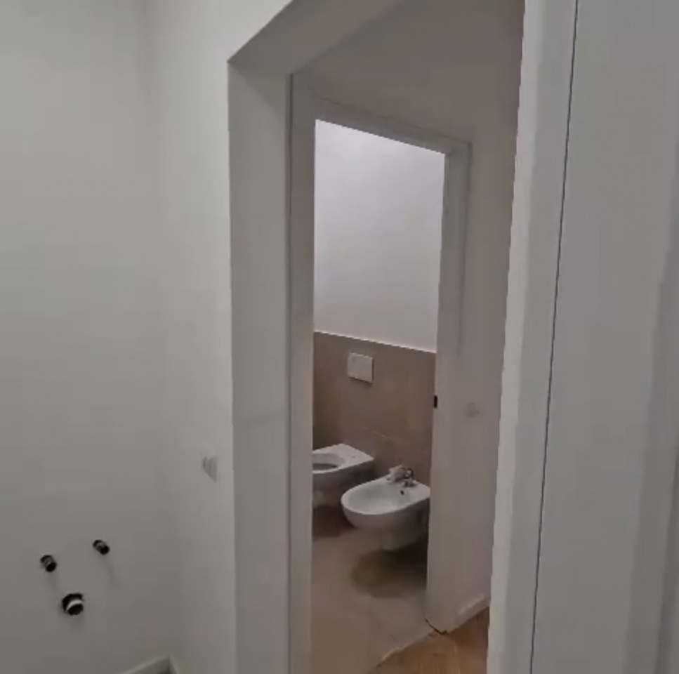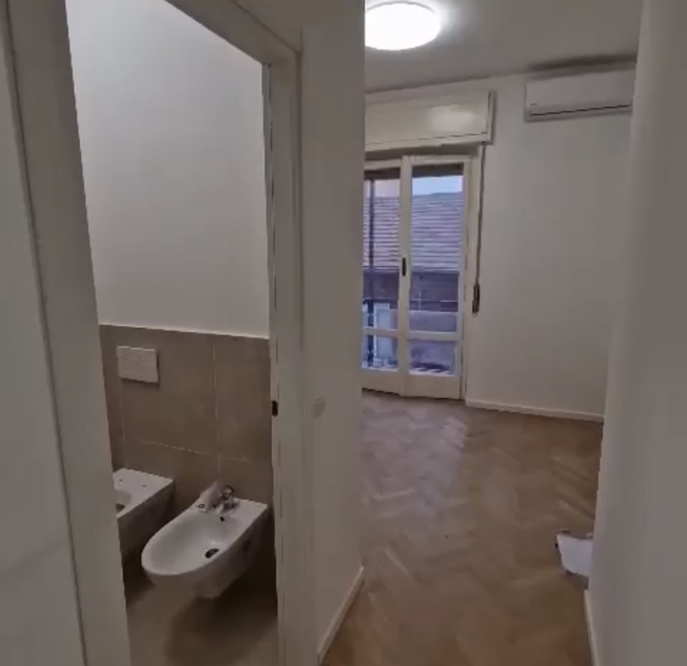 Si tratta di un appartamento composto da ingresso, un bagno finestrato, un primo ambiente con affaccio su un balcone, un secondo locale da poter utilizzare come camera, altro servizio ed un secondo balcone.