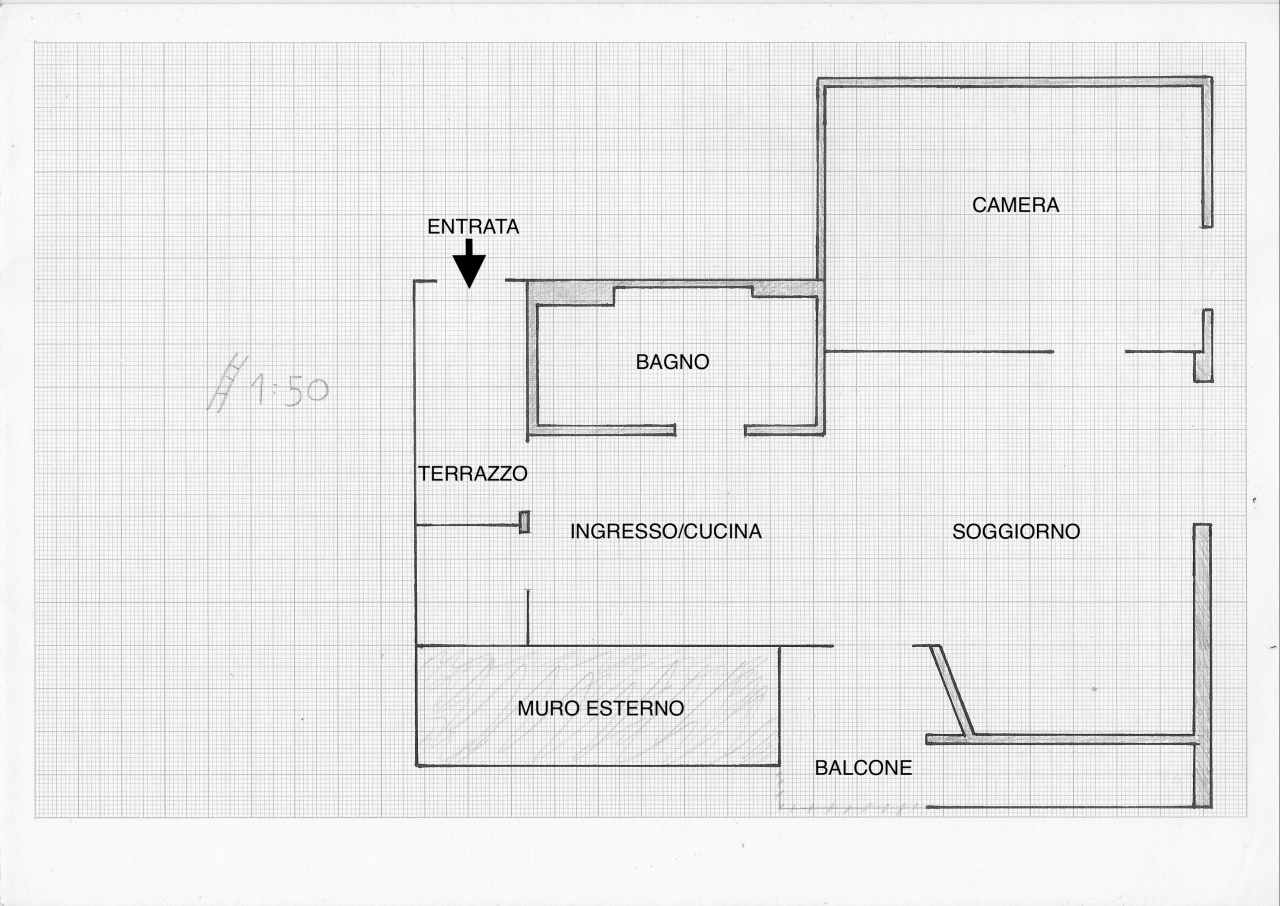 L'appartamento si trova al secondo piano di una piccola palazzina ed è composto da ingresso su un balcone riservato, una cucina abitabile con altro balcone vivibile, un salotto, una camera matrimoniale dotata di ampio armadio ed un bagno finestrato con box doccia. EURO 1050,00 oltre spese condominiali di euro 180,00.