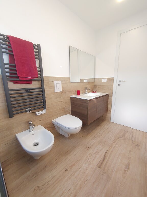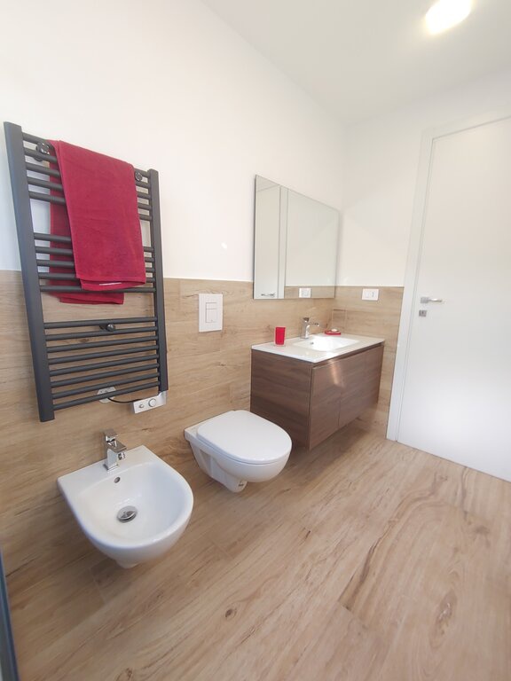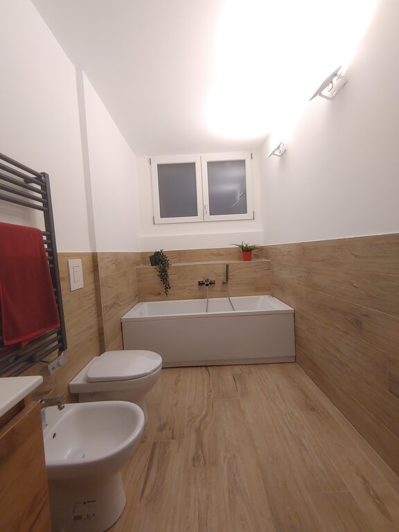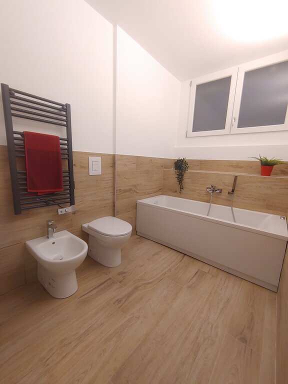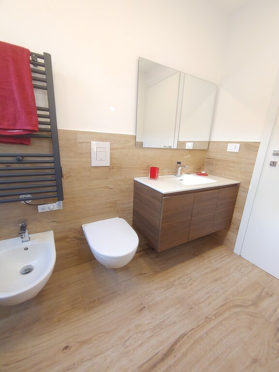 Inoltre, l'ampia taverna con lavanderia e bagno fruibile offre ulteriore spazio e funzionalità. Gli impianti elettrici, idrici e di climatizzazione sono nuovi e certificati, garantendo comfort e sicurezza. Il riscaldamento autonomo e i climatizzatori in Classe A++ assicurano un ambiente sempre piacevole. Con un'illuminazione interamente a LED e un progetto di luce riflessa, ogni angolo dell'appartamento è valorizzato.