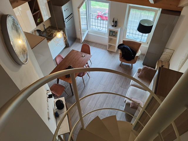Piano Secondo con ascensore: INGRESSO, SOGGIORNO con CUCINA A VISTA, BAGNO con doccia e Ripostiglio. Tramite una scala interna, si accede al soppalco, nel quale è stata ricavata la camera da letto. AL PREZZO DI EURO 1000,00 OLTRE LE SPESE CONDOMINIALI di EURO 100,00.